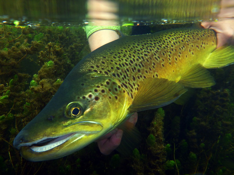 Well, we arrived in New Zealand on the tail end of a heavy rain that left a remarkable strip of ravaged trees and vegetation - some 40 feet above the Grey R. Impressive amounts of water. The levels were generally down everywhere when we arrived, though the last of the higher water still had some great fish in the smaller tributaries. We capitalized on several days worth of good fishing in some of our favorite waters and enjoyed time with our friend Sharron. We moved on to try to head SW to find some more penguins - we have yet to see the Fiordland crested. However, as fates had it, we got detoured to fishing some spring creeks. We never stopped! At first, we fished a few reaches of waters we'd done before. Clearly, the high water of last Christmas period that we were here for had effects on a few reaches as gravel shifted and filled in old, reliable runs. In one case, one reach had only 4 trout with little chance of hiding fish for how shallow it has become. They weren't difficult to catch as they likely haven't seen anglers in some time. Other reaches were very good to us once again. Last year we popped in to one short spring creek to find a mix of rainbows and browns - this visit there were only browns. However, we tagged into some fish in the 6 to 7.5 lb range - impressive for a creek less than 5 yards wide.